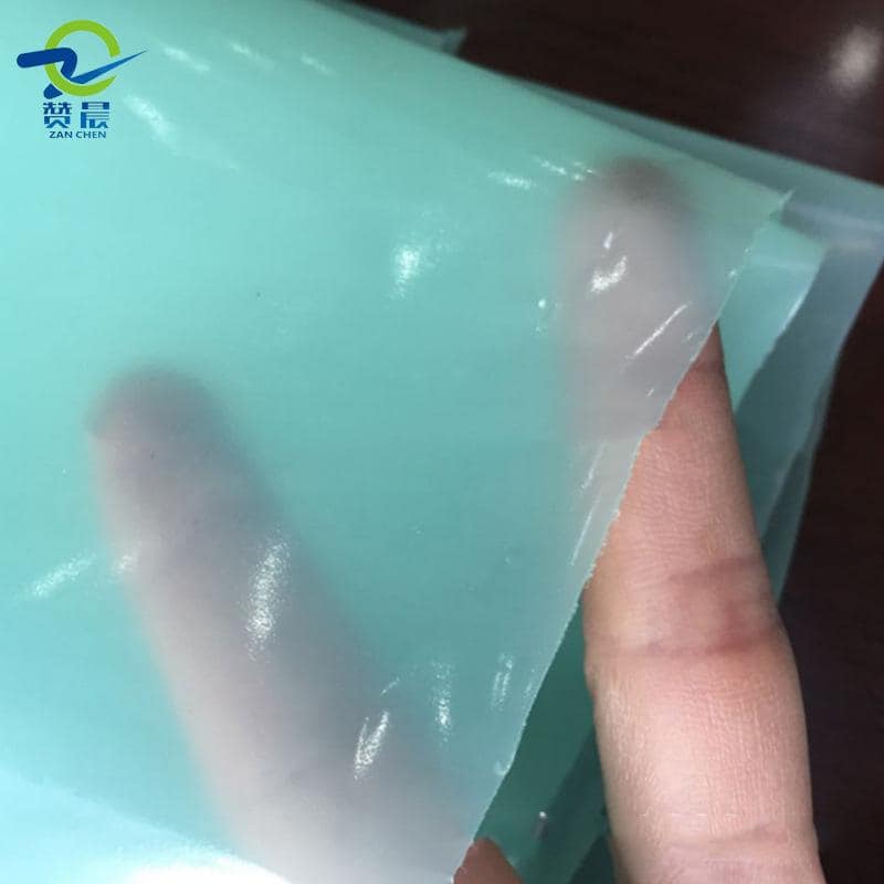 膠膜+PE(綠色),表面為霧面,熱貼合后為透明狀態(tài)。